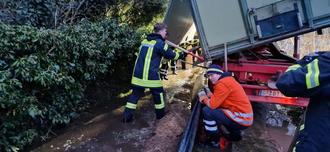 Insgesamt 55 alarmierte Hochwassereinsätze zählte die Leitstelle der Feuerwehr. „Allerdings liegt die Anzahl der abgearbeiteten Einsätze deutlich höher“, so Samtgemeindebrandmeister Sven J. Mayer. „Häufig ging es von einer Einsatzstelle gleich weiter zur nächsten, ohne, dass eine erneute Alarmierung erfolgte.“ Dabei wurden weit über 1.000 Einsatzstunden von den ehrenamtlichen Einsatzkräften geleistet. Vollgelaufene Keller wurden zunächst über die Leitstelle dem jeweiligen Ortsbrandmeister gemeldet. Dieser schaute sich dann die Situation vor Ort an. „In einigen Fällen konnten wir den Bürgern leider nicht helfen“, so Mayer. „Unsere großen Pumpen brauchen einen gewissen Wasserstand, damit sie richtig arbeiten können.“ Bei nur wenigen Zentimetern Wasserhöhe war ein Einsatz der Feuerwehr nicht möglich. Damit die Kameraden der Feuerwehren zumindest Teile der Feiertage im Rahmen ihrer Familien verbringen konnten, arbeiteten einige Wehren im Schichtsystem. So konnten einige das Fest feiern, während andere sich um die Einsätze kümmerten. Erst nach dem Jahreswechsel entspannte sich die Lage, die Pegel der Flüsse waren langsam rückläufig. Dennoch mussten einzelne Feuerwehren immer wieder ausrücken, um Keller von zumeist drückendem Grundwasser zu befreien.