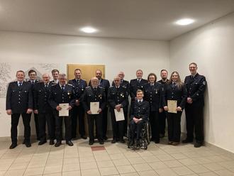 Der stellvertretende Samtgemeindebrandmeister Niko von Köckritz zeichnete die langjährigen Aktiven Adolf Ranze und Heinz Goedecke mit dem Ehrenzeichen des Landesfeuerwehrverbandes Niedersachsen für 70 Jahre Mitgliedschaft aus. Das Ehrenzeichen für 60 Jahre erhielten Wolfgang Schwarz, Hans-Heinrich Brandes, Rudolf Lange, Erich Wiedenroth, Hans Weichsler und Ernst Weichsler, das für 50 Jahre Friedrich-Wilhelm Wiedenroth.