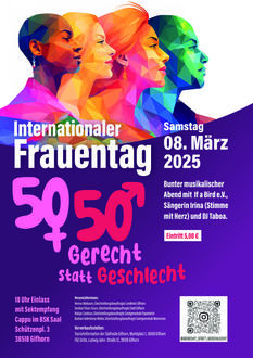 Auch in diesem Jahr sind wir gemeinsam lauter, stärker und sichtbarer. Unter dem Motto unserer Social-Media-Kampagne „Gerecht statt Geschlecht“ laden wir vier Gleichstellungsbeauftragten zu einer unvergesslichen Musik- und Tanzparty ein! Der Event bietet darüber hinaus die Möglichkeit, in entspannter Atmosphäre zu netzwerken und die Bedeutung des internationalen Frauentages gemeinsam zu würdigen. Der Internationale Frauentag ist ein Anlass, um zusammenzustehen, sich auszutauschen und die Geschlechtergerechtigkeit weiter voranzutreiben. In Begleitung von hervorragender Musik und mitreißender Playlist möchten wir den diesjährigen Internationalen Frauentag mit allen zusammen feiern.