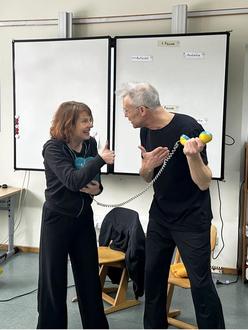 Frau Strahl und Herr Wirsching besuchen jede 4. Klasse der Aller-Oker-Grundschule drei Mal. Leuchtend bunte Requisiten sorgen dafür, dass die Kinder das Gelernte spielerisch wiederholen können.