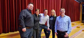 Teamleistung: Samtgemeindebürgermeisterin Karin Single (4.v.l.) mit Steffen Weichsler (1. Samtgemeinderat), Nicole Trajkovic (Fachbereichsleiterin Ordnung), Sven J. Mayer (Samtgemeindebrandmeister) und Niko von Köckritz (st. Samtgemeindebrandmeister) (v.l.n.r.).