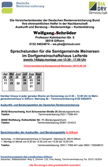 Herr Schröder steht für Beratungen in Leiferde zur Verfügung.