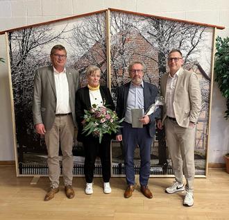 v.l. Erster Samtgemeinderat Ralf Heuer, Dagmar Köhler, Horst Hüfler und Fachbereichsleiter Bildung und Soziales Lutz Hesse