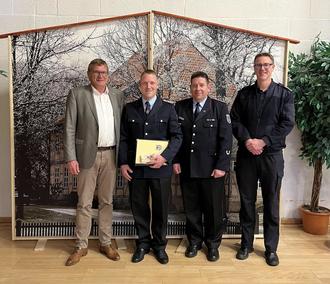 v.l. Ralf Heuer, Daniel Homann, stv. Ortsbrandmeister Ortsfeuerwehr Seershausen Mark André Ragwitz, Niko von Köckritz