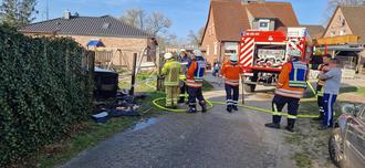 Müden. Alarm für die Feuerwehren Müden/Dieckhorst, Flettmar, Hahnenhorn und dem Einsatzleitwagen aus Ahnsen: Am Samstagvormittag (12. April) gegen 8:50 Uhr wurden die Feuerwehren in die Gifhorner Straße in Dieckhorst geschickt. „Als wir eintrafen, brannte ein Sichtschutzzaun aus Holz sowie ein IBC- Container“, so Nicklas Meyer, Einsatzleiter von der Müdener Wehr. Die Flammen wurden schnell abgelöscht, alle weiteren Einsatzkräfte konnten schon während der Anfahrt wieder in den Standort zurückkehren. Neben dem Zaun und dem Container wurden auch weitere Gegenstände - darunter auch ein Pool aus Kunststoff - von den Flammen zerstört. Die Polizei hat die Ermittlung zur Brandursache aufgenommen, den Schaden beziffert sie nach ersten Ermittlungen auf mehreren hundert Euro.