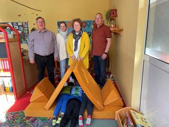 Seit mehr als 20 Jahren unternehmen sieben Paare, genannt die „Bomber-Truppe“, gemeinsame Veranstaltungen und Reisen. Als im vergangenen Jahr vom Kultur- Und Heimatverein Mitstreiter für den Weihnachtsmarkt gesucht wurden, erklärte sich die „Bomber-Truppe“ bereit, mit einem Bratwurststand und Getränken den Weihnachtsmarkt aktiv mit zu gestalten. Gemeinsames Verständnis dieser Truppe war es, einen möglichen Überschuss, im Ort Müden/Dieckhorst für gemeinwohlorientierte Zwecke zu spenden. Neben anderen Einrichtungen wurde dem Förderverein der DRK Krippe und Kita Müden e.V. ein neues Funzy Sofa von Thomas Busse und Jürgen Kröger, stellvertretend für die Bomber-Truppe, überreicht. Das Funzy-Sofa ermöglicht den Kindern Höhlen zu bauen und dabei der Phantasie freien Lauf zu lassen. Auch das Entspannen wie auf einer Hängematte ist möglich. Außerdem werden Balancieren und das Training der Grobmotorik gefördert. Gemeinsam mit unseren Kindern freuen wir uns sehr über die Spende und sagen herzlichen Dank an die „Bomber-Truppe“. Auch auf dem Weihnachtsmarkt 2024 ist die Truppe wieder mit einem Bratwurststand und Getränken vertreten.