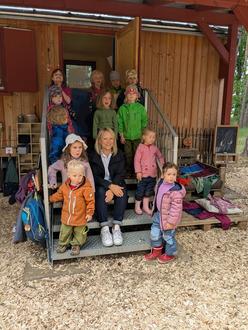 Am 27.05.2025 stattete Frau Single uns einen Besuch im Wald ab. Sie wollte sich gern ein Bild von unserem Kindergartenalltag machen. Aus diesem Grund besuchte sie zuerst die Heidefüchse und schaute sich interessiert den Bauwagen und den Platz an. Viele Kinder zeigten ihr begeistert alle Möglichkeiten, die der Platz und auch der Wald hergeben. Das Hochbeet wurde begutachtet, die Schnitzecke, der Morgenkreisplatz und auch die erst neu selbst gebaute Hütte, welche die Kinder voller Stolz präsentierten. Zum Abschied machten wir noch ein tolles Gruppenbild, bevor es für Frau Single mitten durch den Wald zum Bauwagen der Heidebären ging, welcher sich in Rufweite der Füchse befindet. Als sie ankam waren die meisten Kinder bereits am Matschen, denn durch den Regen der letzten Tage war der Wassercontainer ordentlich gefüllt. Frau Single beobachtete mit Freude das Spiel der Kinder und unterhielt sich ausgiebig mit den Erziehenden über verschiedene Themen wie den Ablauf des Kindergartentages, das allgemeine Wohlbefinden im Job, Möglichkeitsräume des Waldes für pädagogische Zwecke und vielem mehr… Begeistert berichtete sie von eigenen Projekten zur Förderung von Kindern im Umgang mit der Natur, bevor sie sich schon wieder auf den Weg zum nächsten Termin machte.