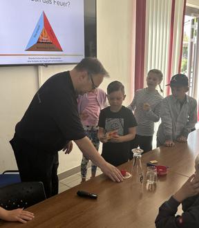 Die Schülerinnen und Schüler des dritten Jahrgangs haben sich in den letzten Wochen im Sachunterricht mit dem Thema "Feuer" beschäftigt. Dazu wurden einige Experimente durchgeführt, um z. B. zu erarbeiten "Was brennt?" und "Was braucht ein Feuer noch zum Brennen?". Der Höhepunkt der Einheit bildete der Besuch der Freiwilligen Feuerwehr Müden. Am 07.06.2024 gingen die Klassen 3a, 3b und 3c jeweils mit ihrer Lehrkraft zur Feuerwehr. Dort wurden die Kinder herzlich von den drei freiwilligen Helfern Marco Fricke, Jan Hustedt und Sven Raupers empfangen. Zunächst wurden in einem kurzen Vortrag die wichtigsten Aspekte zum Umgang mit dem Feuer vermittelt. Anschließend ging es bereits nach draußen. Im Außenbereich wurde den Schülerinnen und Schülern verschiedene Brennquellen gezeigt. Jedes Kind durfte einen Feuerlöscher benutzen und sogar ein imaginäres Feuer mithilfe des Löschfahrzeuges löschen. Zum Schluss haben sie sich noch die verschiedenen Werkzeuge der Feuerwehrleute angeschaut und konnten viele Fragen stellen. Vielen Dank für diesen wunderschönen Tag und ein herzliches Dankeschön für das Engagement und die Mühe der drei Kameraden der Feuerwehr. Ein Erlebnis, das den Schülerinnen und Schülern lange im Gedächtnis bleiben wird.