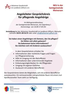 Um den pflegenden Angehörigen den Zugang zu Austausch und Unterstützung zu erleichtern, öffnet das Mehrgenerationenhaus der Samtgemeinde Meinersen seine Türen für ein Angebot von der Alzheimer Gesellschaft im Landkreis Gifhorn e.V.