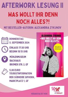 Die Journalistin und Autorin Alexandra Zykunov liest aus ihrem neuen Buch "Was wollt ihr denn noch Alles?!". Bereits mit ihrem vorherigen Buch "Wir sind doch alle längst gleichberechtigt" hat sie das Publikum begeistert. In ihrem neuen Werk nimmt sie wichtige Studien und die Benachteiligung von Frauen humorvoll unter die Lupe.