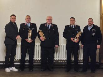 Für ihre langjährige Tätigkeit als Führungskräfte der Feuerwehren ehrten Bürgermeister Marc Blanck und Stadtwehrleiter Danny Pachur während der Wehrleiterdienstberatung drei Kameraden.