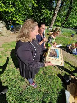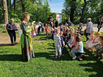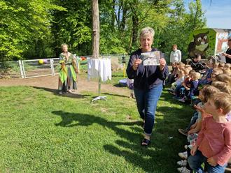 Waldfee Marita Schöndube verteilte Feenstaub und tauchte in die Geschichte des Kindergartens ein.