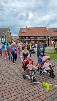 Zum Abschluss der Festwoche gab es einen großen Festumzug durch Bösdorf. Alle Kinder bekamen Winkelemente mit verschiedenen Motiven in die Hand und gingen gemeinsam mit ihren Eltern hinter der Feuerwehr hinterher. Auch viele Gäste, Bösdorfer und andere Interessierte schlossen sich dem Umzug an.