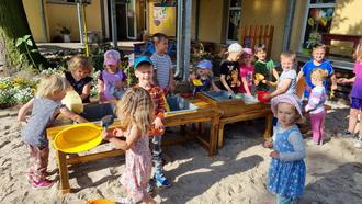 Vor allem danken wir dem Förderverein für das tolle Geschenk. Endlich haben wir eine Matschanlage.