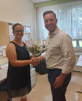 Bürgermeister Marc Blanck und Schulleiterin Petra Gericke wünschten ihr viel Glück auf ihrem Lebensweg und begrüßten sogleich die Nachfolgerin. Janina Schlee übernimmt die Aufgaben ihrer Vorgängerin.