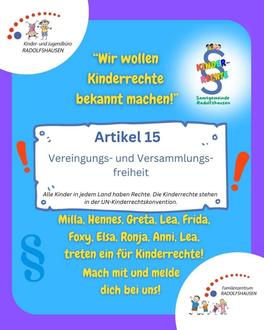 Die UN-Kinderrechtskonventionen sind eine Grundlage der Arbeit des Kinder- und Jugendbüros und des Familienzentrums. Seit 2024 besteht eine Kinderrechtegruppe, die die Kinderrechte auch transparenter in die Öffentlichkeit bringen möchte. Es werden verschiedene Aktionen von der Gruppe zu diesen durchgeführt. Dazu gehört auch die mtl. Veröffentlichung von Kacheln mit einem von den Kindern ausgewählten Kinderrecht.