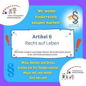 Die UN-Kinderrechtskonventionen sind eine Grundlage der Arbeit des Kinder- und Jugendbüros und des Familienzentrums. Seit kurzem besteht eine, noch kleine, Kinderrechtegruppe, die die Kinderrechte auch transparenter in die Öffentlichkeit bringen möchte. Weiterhin werde nach und nach Aktionen zu diesen durchgeführt. Dazu gehören auch die mtl. Veröffentlichung von Kacheln mit einem von den Kinder ausgewählten Kinderrecht.