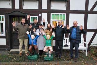 Samtgemeindebürgermeister Arne Behre und sein Stellvertreter Jürgen Werner begrüßen die Gäste aus der Partnergemeinde Werchowyna in der Wilhelm-Busch-Mühle