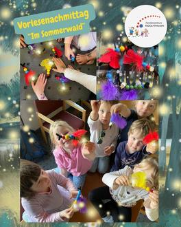 Die kleinen „Bücher – Glüh – Würmchen“ lauschten ganz fasziniert der spannenden Lesung und konnten wie immer die Bilder dazu auf der großen Leinwand betrachten und bei der Bastelei gab`s diesmal als Idee natürlich ein Glühwürmchen. Die fröhlich bunten Ergebnisse können sich sehen lassen und leuchten tatsächlich im Dunkeln.