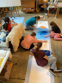 Der zweite Tag wurde bunt: Zeichnen und Malen stehen auf dem Programm. Mit Acrylfarben, Pastell oder Kreide erstellen wir zuerst individuelle Werke und gestalten anschließend gemeinsam eine Collage zu unserem Thema.