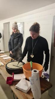 Bei Crepes, Bratwurst, und anderen Köstlichkeiten wurden noch einmal die selbstgebastelten Laternen bestaunt und Lose für die große Tombola erworben.