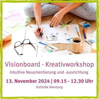 Am 13. November 2024 findet von 9.15 bis 12.30 Uhr in den Räumen der Koordinierungsstelle frau+wirtschaft im Landkreis Nienburg, ein kostenfreies Seminar mit dem Thema „Intuitive Neuausrichtung mit Hilfe eines Visionsboards“ statt.