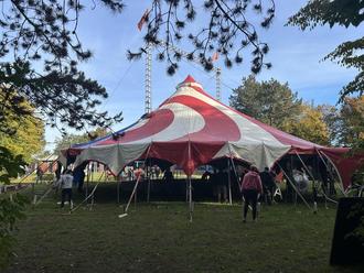 Am 20. Oktober war es wieder so weit. Ungefähr 40 Eltern und Lehrkräfte fanden sich ein, um zusammen mit den Mitarbeiterinnen und Mitarbeitern des Circus Phantasia das Zirkuszelt aufzubauen. Allein die Plane für das Zelt ist so groß und schwer, dass dafür ein eigener LKW benötigt wird. Diesen anschließend wieder von der Wiese zu bekommen, stellte sich als eine Herausforderung heraus, denn die Wiese war so weich, dass sich der LKW festfuhr. Mit Hilfe eines in Bereitschaft stehenden Unimogs konnte das Problem aber zeitnah gelöst werden.