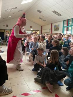 Der Titel ließ schon aufhorchen und versprach eine kurzweilige Theatervorstellung, und so kam es dann auch. Am 28. Januar 2025 war das Tamalan-Theater in der Grundschule Rehburg zu Gast und verzauberte Schülerschaft und Lehrkräfte gleichermaßen. Schon vor Beginn des Stückes waren die beiden Schauspieler – ja, es waren wirklich nur zwei, die im Verlaufe des Stückes mehr als 10 Rollen darboten – im Zuschauerraum präsent und nahmen Kontakt zu den Kindern auf.