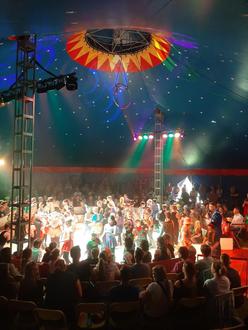 Zuvor war das bunte Zelt auf der Sportwiese, mit Hilfe vieler Eltern und unter Anleitung des Zirkusdirektors Stefan Frank und seinem Team, gemeinsam aufgebaut worden.