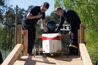 Die Seifenkiste der JF Rehburg kurz vor dem Start von der Rampe