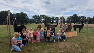 Die Krippengruppe „Löwenzahn“ vom Kindergarten Wirbelwind hat einen besonderen Ausflug zum Lamameer in Rehburg gemacht. Trotz eines kleinen Regenschauers startete der Tag gemütlich mit einem Frühstück.