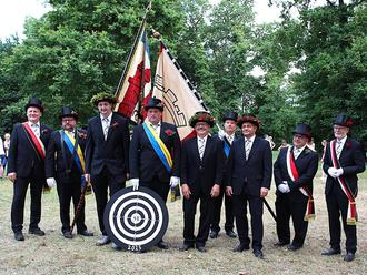 Der Höhepunkt des Schützenfestes folgte am Montag. Bereits um 9:30 Uhr versammelten sich 549 Ausmarschiererinnen und Ausmarschierer auf dem Stadtplatz – traditionell in schwarzen Anzügen, mit Holzgewehren und Zylindern. Nach dem feierlichen Einmarsch zum Schützenplatz eröffnete Ortsbürgermeister Jürgen Busse offiziell das Königsschießen.