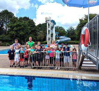 Gut angeleitet und angefeuert trainierten sie bei bestem Wetter ihre Schwimmfähigkeiten, was mit vielen neuen Abzeichen belohnt wurde.