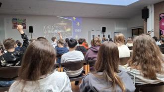 Politische Europabildung hoher Qualität ist der Anspruch der Europa-Union Deutschland - EUD Kreisverband Göttingen e.V., wenn sie den Mainzer Politologen Ingo Espenschied an unserer Carl-Friedrich-Gauß-Oberschule in Groß Schneen die Geschichte der Europäischen Integration unter dem Motto „75 Jahre Europa“ in Erinnerung an den 75. Jahrestag des Schuman-Plans vorstellen und mit den Schülerinnen und Schülern interaktiv besprechen lassen.