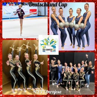 Im Rahmen des Internationalen Deutschen Turnfestes in Leipzig fand der Deutschland-Cup der Rhythmischen Sportgymnastik (RSG) in der K-Klasse statt – sowohl im Einzel als auch in der Gruppe. Mit dabei war auch der TSV Obernjesa, der mit einer Einzelgymnastin sowie zwei Gruppen in unterschiedlichen Altersklassen vertreten war.