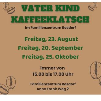 Der Vater-Kind-Kaffeeklatsch findet einmal im Monat statt, als regelmäßiges Angebot des Familienzentrums Rosdorf. Väter und ihre Kinder sind ganz herzlich eingeladen auf eine Tasse Kaffee vorbei zu kommen. Eine Anmeldung ist nicht erforderlich. Kaffee und Kuchen stellen wir kostenlos bereit.