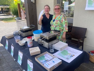 Die Initiative „Zeit für ein Gespräch“ beteiligte sich mit einem Waffelstand am Sommerfest des Familienzentrums. In fröhlicher Stimmung buken wir pausenlos die sehr beliebten Waffeln und konnten bei der Aktion über unser Angebot im Familienzentrum informieren. Das war in dem Umfang nur durch die Unterstützung des Teams des Cafe Auszeit möglich. Das Cafe stellte die Geräte zur Verfügung, baute auf und räumte am Schluss ab und spendete den leckeren Waffelteig. Der wurde während des Sommerfestes immer wieder vom Cafe Auszeit – Team nachgeliefert – nur so konnte die große Nachfrage bewältigt werden. Wir sind begeistert von dieser guten Zusammenarbeit und bedanken uns herzlich für die Unterstützung!