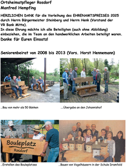 HERZLICHEN DANK für die Verleihung des EHRENAMTSPREISES 2025 durch Herrn Bürgermeister Steinberg und Herrn Henk (Vorstand der VR Bank Mitte).