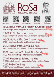 Hausgeist RoSa Fiege führt durch das Programm der offenen Bühne und wenn er sich traut, wird er sein RoSa-Fiege Lied singen.