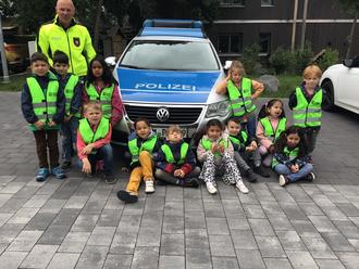 Er zeigte den Kindern das Polizeiauto und alle Kinder durften einmal „Probe sitzen“, sich das Auto und alle Knöpfe ganz genau anschauen.