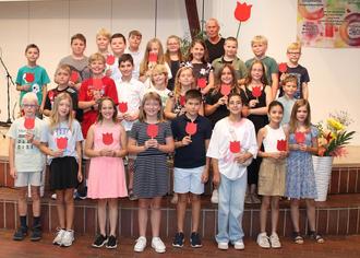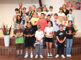 Mit dem schwungvollen Beitrag „Applaus, Applaus“ präsentierte die Klasse 6g1 einen fröhlichen selbstgeschriebenen, musikalischen Gruß an die neuen Mitschülerinnen und Mitschüler. Der wohl spannendste Teil für die neuen Schülerinnen und Schüler folgte mit der Klasseneinteilung. Nach der Einteilung der fünf neuen Klassen ging es für die neuen Fünftklässlerinnen und Fünftklässler in ihre erste Unterrichtsstunde, während die Eltern bei kühlen Getränken, Kaffee und Kuchen ins Gespräch kamen. Mit vielen strahlenden Gesichtern und einer großen Portion Vorfreude auf das neue Schuljahr endete eine rundum gelungene Einschulungsfeier an der Gauß-Schule.