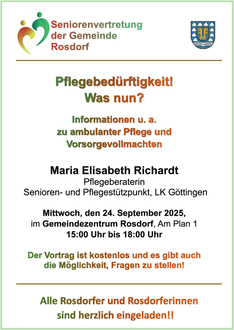 Alle Details und weitere Informationen finden Sie auch auf unserer Homepage http://seniorenvertretung-rosdorf.de/.