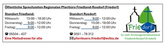 | 9:30 Uhr | Gottesdienst, Kirche Klein Wiershausen (Pn. Wackenroder) |