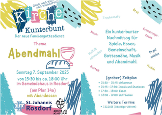 | 15:30-18 Uhr | Kirche Kunterbunt, Familiengottesdienst im Gemeindehaus (KiKu-Team) |