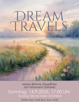Unter dem Motto „Dream Travels“ musizieren am Sonntag, 14.09.2025 um 17 Uhr Maren Böhme (Querflöte) und Jan Görsmann (Gitarre).
