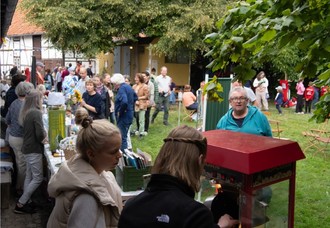 Am 23.08.25 fand zum dritten Mal das Sommerfest für die ganze Familie im und um den Saal statt. Auf der der alten Festwiese vor dem Saal wurden ab 14 Uhr die Flohmarktstände aufgebaut. Durch die offenen Fenster gab es eine gute Verbindung zu den Aktionen im Saal.