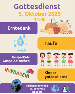 | 9:30 Uhr | Erntedankgottesdienst in Klein Wiershausen |