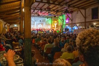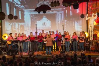 Um es gleich vorwegzunehmen: Es war ein rundum wunderbarer Tag für die rund 60 Sängerinnen und Sänger, Musikerinnen und Musiker – und natürlich für die Leitungen der drei Chöre. Ein ganz herzlicher Dank geht an Ralf Lesjak und dem Kulturverein RoSa Fiege e.V., der uns nicht nur den großartigen Saal, sondern auch den bezaubernden Garten für einen ganzen Samstag zur Verfügung gestellt hat.