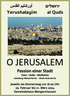 Bitte beachten Sie den Flyer zu der Passions-Reihe von Michael Borreé „Passion einer Stadt und eines Volkes“ mit Psalmen, Bibeltexten, israelischen Hymnen und jiddischen Liedern (Gosia Borreé) vom 29.02. bis zum 21.03. immer donnerstags um 18.00 Uhr im kirchl. Gemeindehaus in Mengershausen- Sie sind herzlich dazu eingeladen.