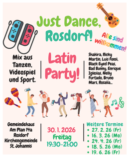 • Just Dance: letzter Montag im Monat, 19:30-21:00 Uhr (30.01.)